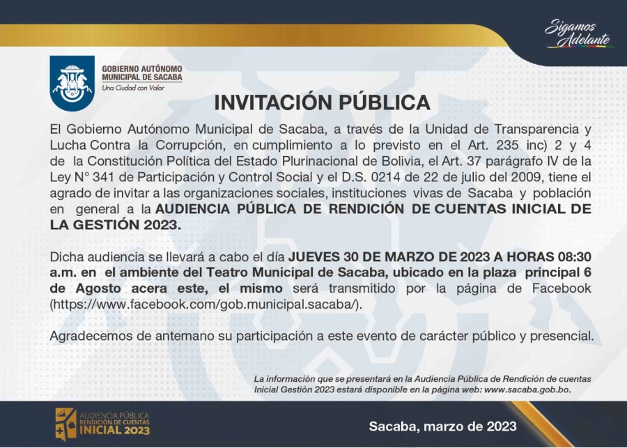 AUDIENCIA PÚBLICA DE RENDICIÓN DE CUENTAS INICIAL-GESTIÓN 2023